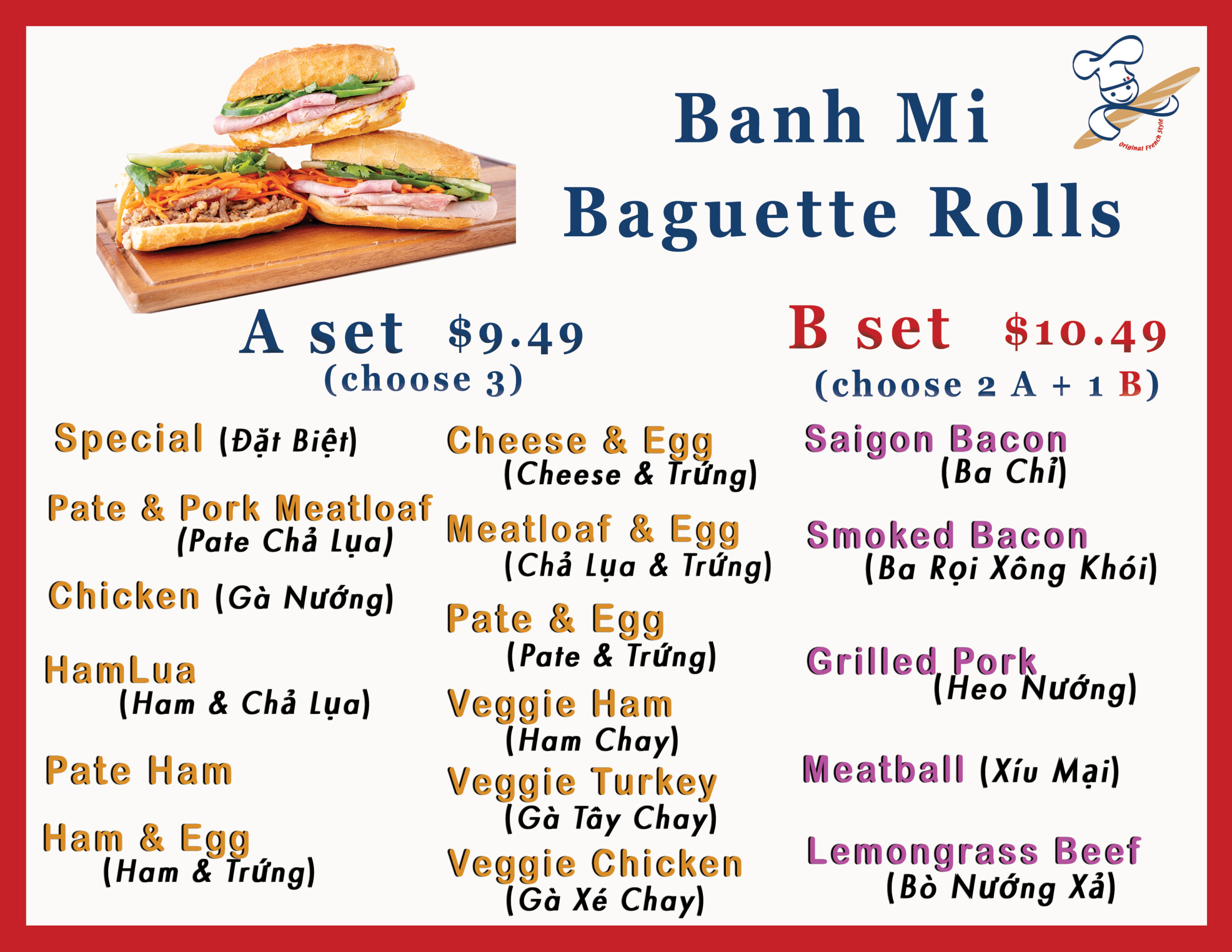 The Mr. Baguette journey started in 2003, with a vision of bringing Paris’ authentic French Baguettes to Southern California, with a French-Vietnamese influence.